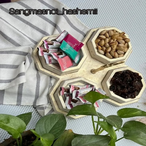 اردوخوری سنگ مصنوعی چهار خانه با طراحی زیبا و مقاوم، گزینهای شیک و کاربردی برای پذیرایی از مهمانان است. محفظههای جداگانه آن مناسب برای آجیل، شکلات، خشکبار و تنقلات مختلف بوده و دسته فلزی طلایی جلوهای لوکس به میز پذیرایی شما میدهد.تعداد خانه: ۴