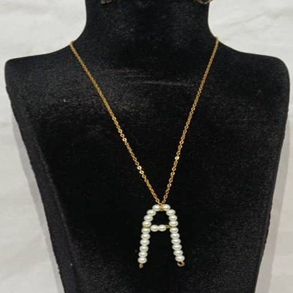 گردنیدمرواریدی حرف Aدست ساز زنجیر استیل رنگ ثابت 30 سانتی
