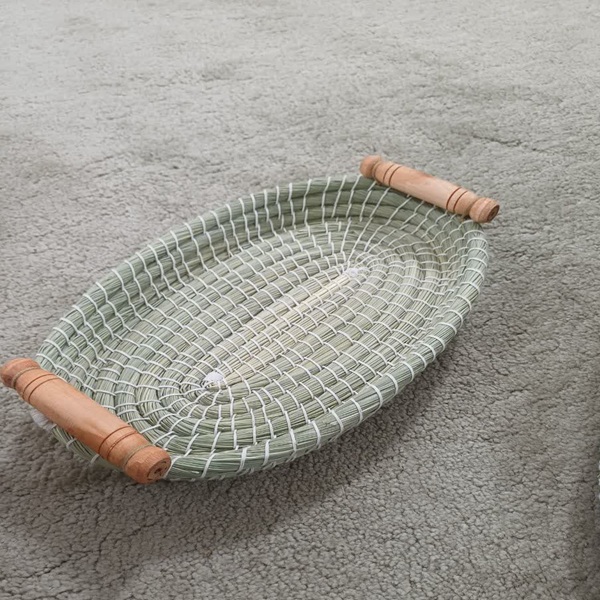سبد میوه و سبزیبا دسته چوبی طرح بیضی کپو بافیدست ساز و طبیعیجهت تزیین میز و سفره